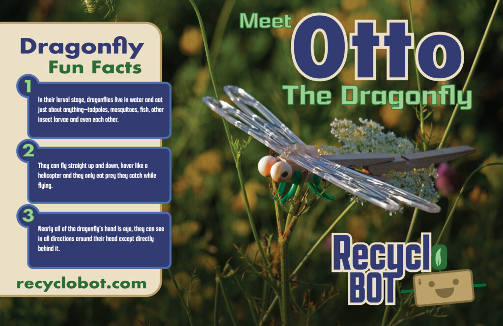 The poster has a similar color scheme with a large title for the month’s bot as well as the logos and facts researched specific to the bot. The photo was taken by taking the dragonfly into a small bog at sunset, so it felt natural and at home in relation to the bot’s habitat.