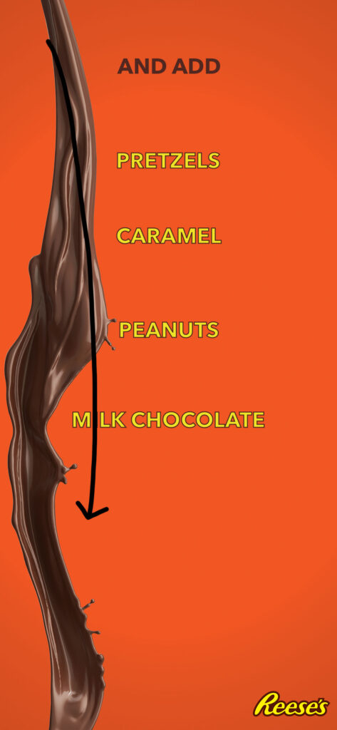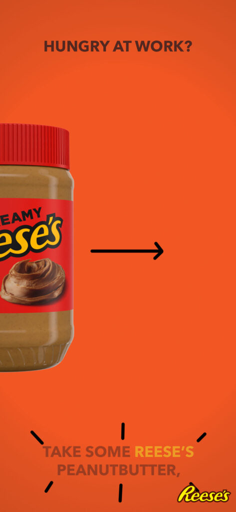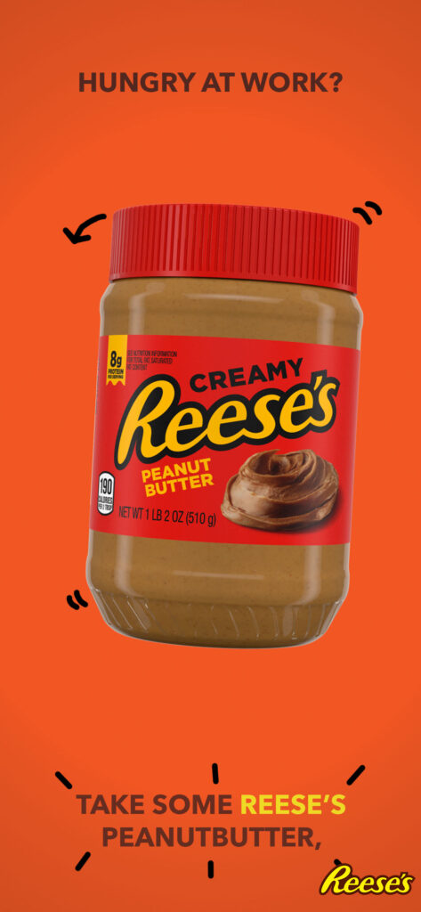 After viewing reel examples, we were able to visualize how other products manage reels and made our approach to reels more thoroughly planned out after having visuals to see what works and what doesn’t in a general sense. We used this info and factored it into the Reese’s reel to get that floating product on a background look while also making the objects have clarity and consistency.